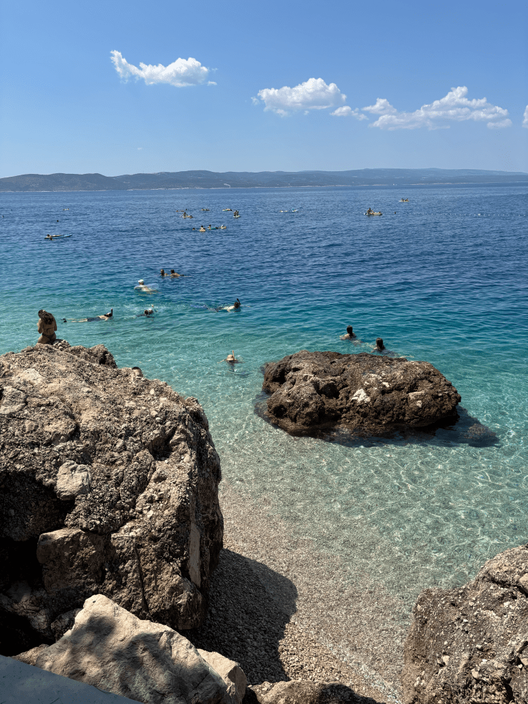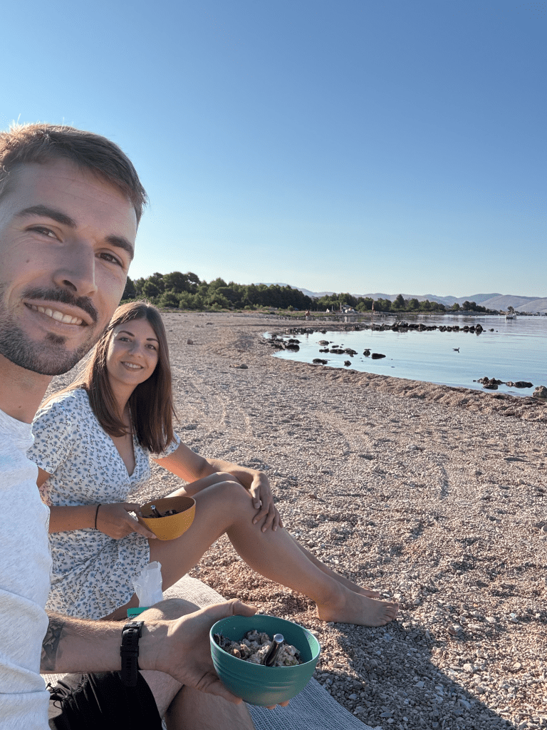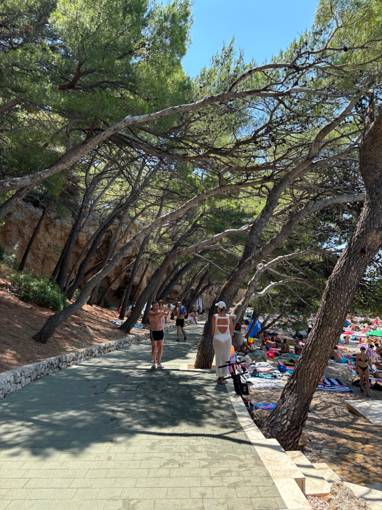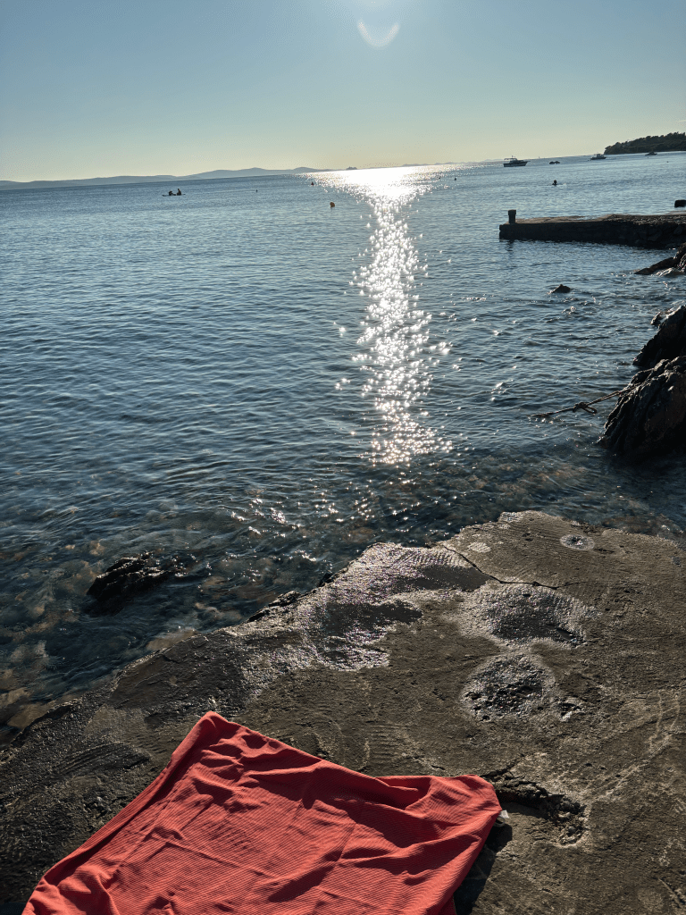 Après la visite, nous faisons une petite baignade sur la plage de Skradin sous l’ombre des arbres. J’y avais déjà été en 2019 et j’avais adoré l’ambiance douce et apaisante en fin d’après-midi. Toujours un plaisir de retrouver ce petit coin tranquille 🏖️