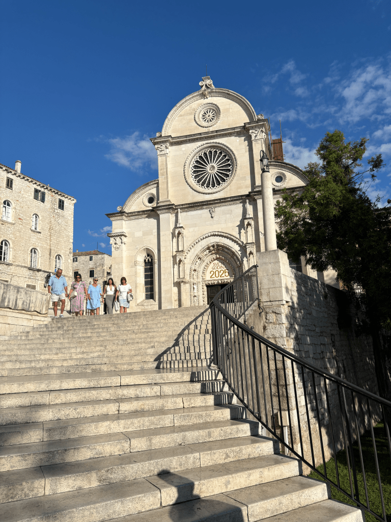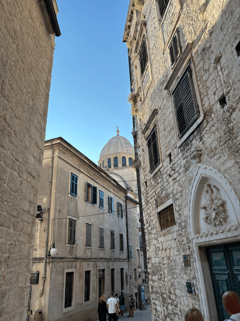 Un vrai labyrinthe que les petites ruelles de Šibenik ! Avec Quentin, on adore s’y perdre, entre montées et descentes. En fin d’après-midi, au détour d’une place, une petite scène avec un orchestre à cordes nous surprend : une musique magnifique, qui complète parfaitement l’ambiance et l’atmosphère de la ville 😌