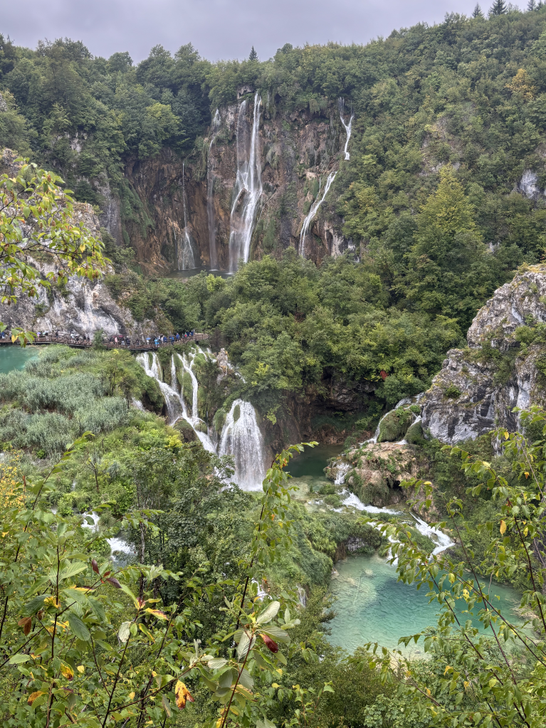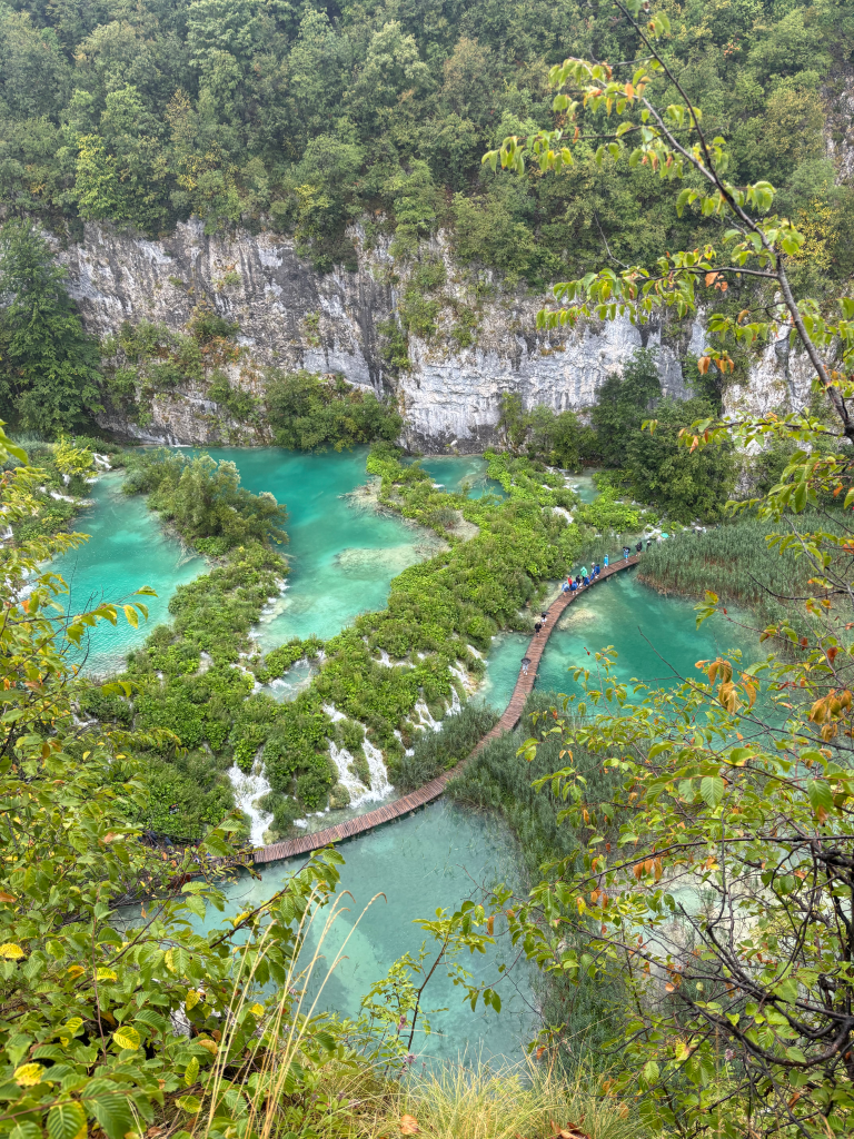 Cette fois, nous visitons les cascades de Plitvice sous une pluie continue. La première fois que je les avais vues, en 2019, le soleil baignait le site 🙈