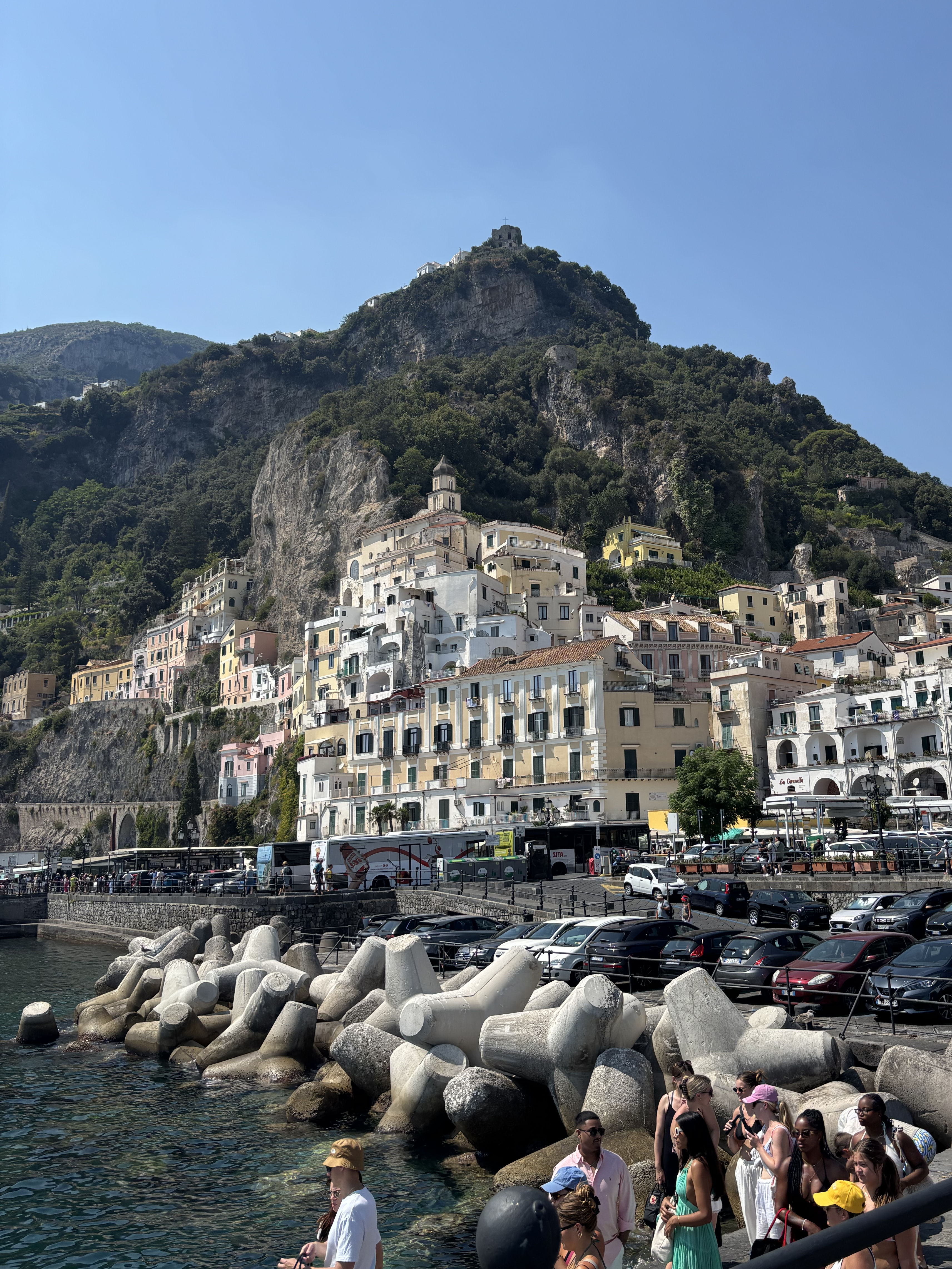 Sans doute l’un des villages les plus emblématiques de la côte. Une montagne de maisons colorées qui semble tomber dans la mer. La lumière de fin d’après-midi complique un peu les photos — contre-jour oblige — mais la beauté du lieu reste intacte.