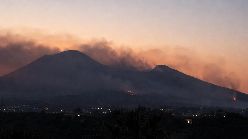 Depuis la Côte Amalfitaine, nous reprenons la route avec notre van en direction d’un camping situé à proximité de la ville de Pompéi. Le paysage change peu à peu, laissant derrière nous la mer pour des terres dominées par la silhouette impressionnante du Vésuve.