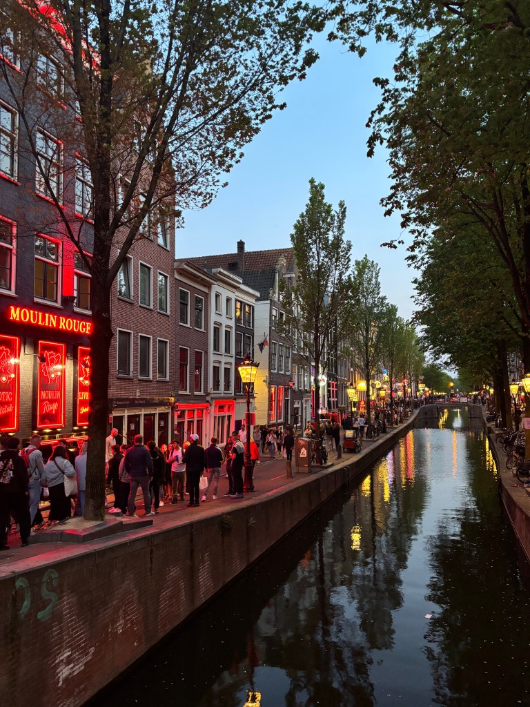 Le quartier est situé en plein centre, avec de jolies ruelles, des canaux et une architecture typique. La journée, l’ambiance est plutôt calme et on peut s’y promener sans problème. Le soir, il devient beaucoup plus animé, avec une atmosphère unique, parfois déroutante. Les photos sont strictement interdites devant les vitrines (et cela est très respecté). C’est un endroit qui ne laisse pas indifférent : on peut être surpris, curieux, parfois un peu mal à l’aise… mais c’est aussi ce qui fait la singularité d’Amsterdam.